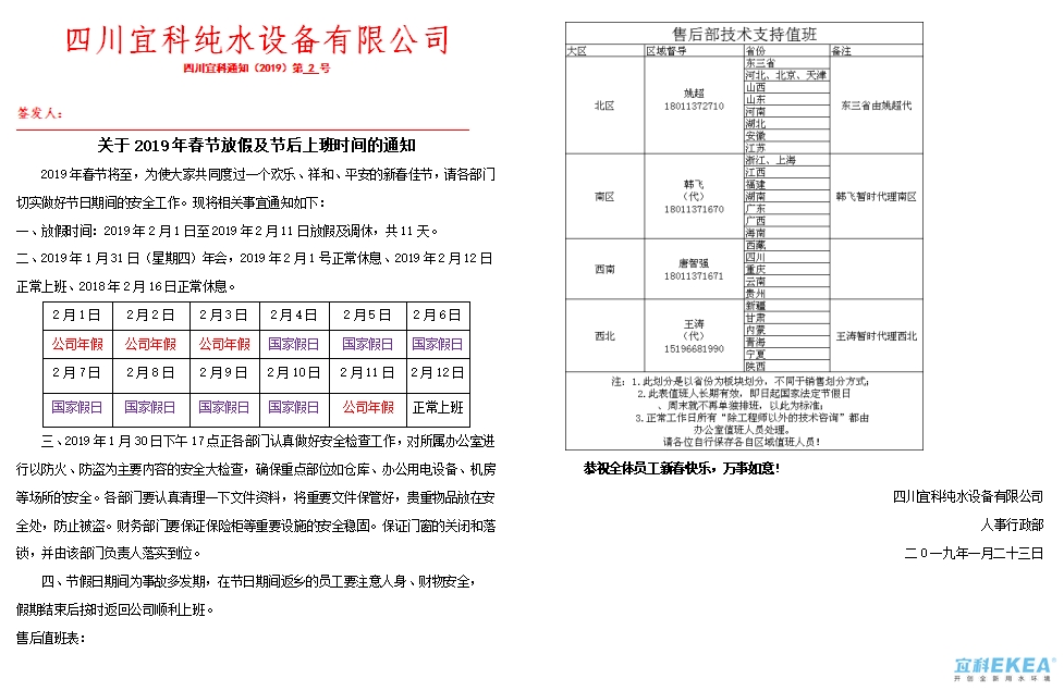 2019年春節(jié)將至,為使大家共同度過一個(gè)歡樂、祥和、平安的新春佳節(jié),請(qǐng)各部門切實(shí)做好節(jié)日期間的安全工作通知如下: