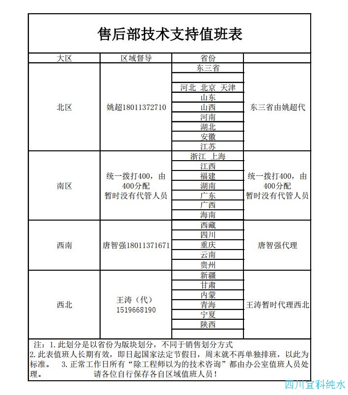附售后部值班表:
