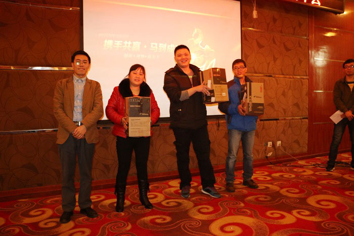 在2014年公司團(tuán)拜會(huì)上李總總結(jié)了公司過(guò)去一年的主要業(yè)績(jī)及成果,并對(duì)新的一年公司的發(fā)展進(jìn)行了規(guī)劃與展望。在李總慷慨激昂的演講下,全體員工深深的感受到了自己作為宜科人的責(zé)任。公司的發(fā)展離不開每位員工的付出,公司的美好明天依托著每位員工的努力。每位員工的汗水公司都看在眼里,公司對(duì)優(yōu)秀員工的頒獎(jiǎng)只是公司在表達(dá)您們對(duì)公司的辛勞付出。 李總為我們2014年度9位優(yōu)秀員工頒獎(jiǎng)。 年會(huì)上最激動(dòng)人心的時(shí)刻當(dāng)然是抽獎(jiǎng)啊,人事總監(jiān)楊總為獲獎(jiǎng)?wù)哳C獎(jiǎng)并留言。